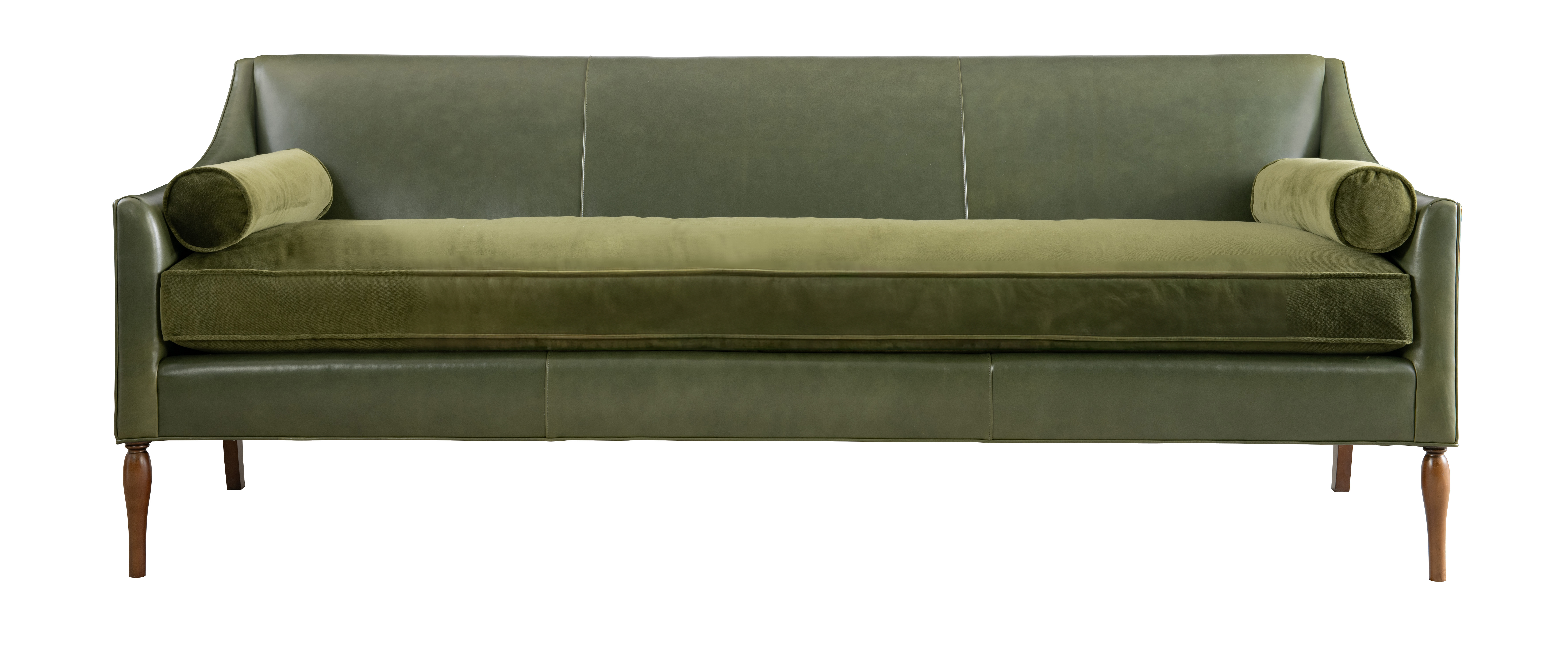 The Frederick M2M Sofa pays homage to traditional design with its tight back, slender sloping track arms, and delicate turned legs. Its traditional silhouette is enhanced with the addition of two bolsters and a bench seat, offering both comfort and a touch of flair to any space. When ordering this item in leather, please note that pillows are not included and must be purchased separately. To match the standard pillows included with the fabric version, order an additional quantity of pillow SKU HC991-96.