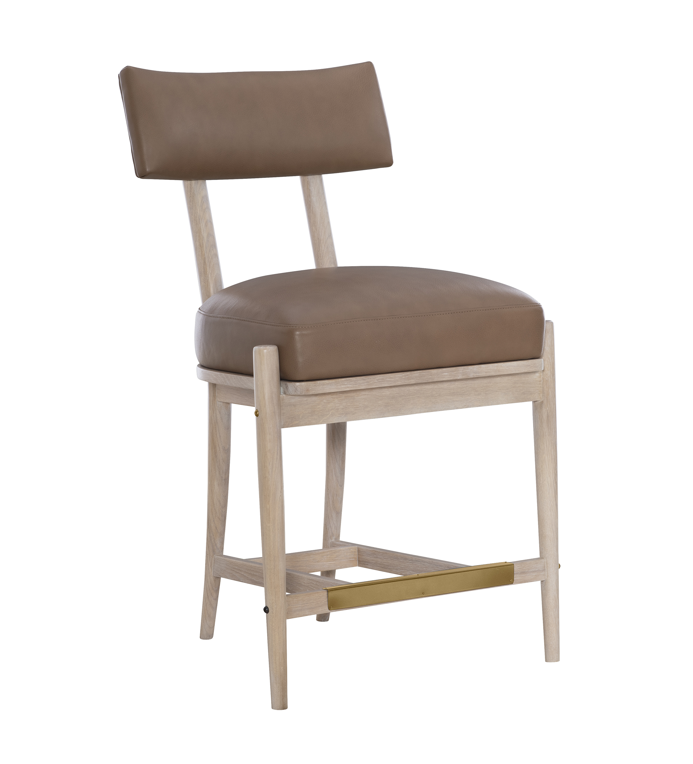 Klio is the epitome of elegance and comfort, designed for both refined dining and relaxed gatherings. With its klismos shaped back and tailored upholstery, the Klio Counter Stool invites guests to linger, offering exceptional comfort with a sculpted silhouette. The Counter Stool version maintains the same exquisite craftsmanship, elevated to the perfect height for casual dining or entertaining. Thoughtfully proportioned and meticulously constructed in solid White Oak with a choice of either Browned Steel foot guard and accents or Antique Brass foot guard and accents, Klio blends seamlessly into a range of interiors, from contemporary to transitional, making it a timeless investment in both form and function.