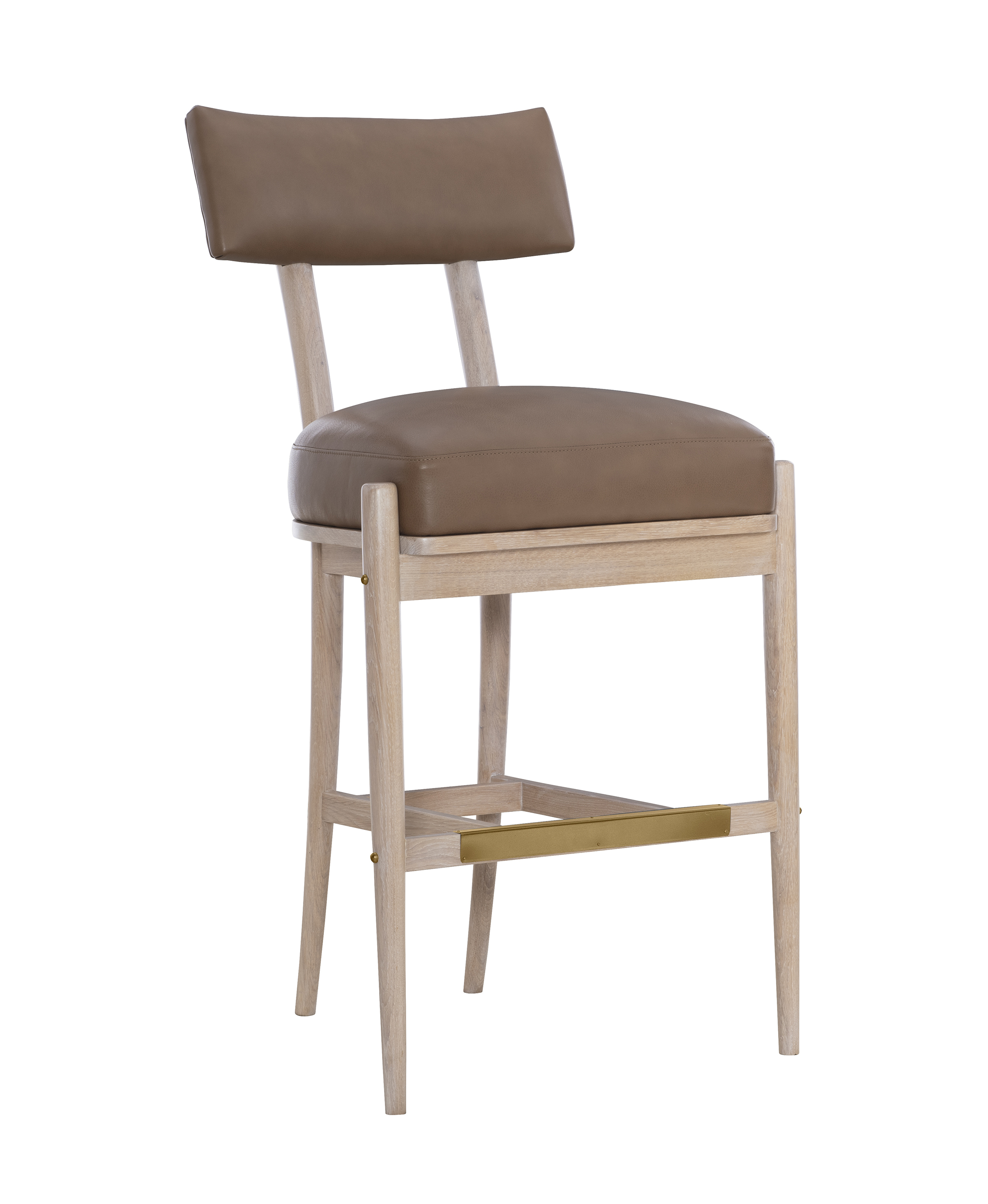 Klio is the epitome of elegance and comfort, designed for both refined dining and relaxed gatherings. With its klismos shaped back and tailored upholstery, the Klio Bar Stool invites guests to linger, offering exceptional comfort with a sculpted silhouette. The Bar Stool version maintains the same exquisite craftsmanship, elevated to the perfect height for casual dining or entertaining. Thoughtfully proportioned and meticulously constructed in solid White Oak with a choice of either Browned Steel foot guard and accents or Antique Brass foot guard and accents, Klio blends seamlessly into a range of interiors, from contemporary to transitional, making it a timeless investment in both form and function.
