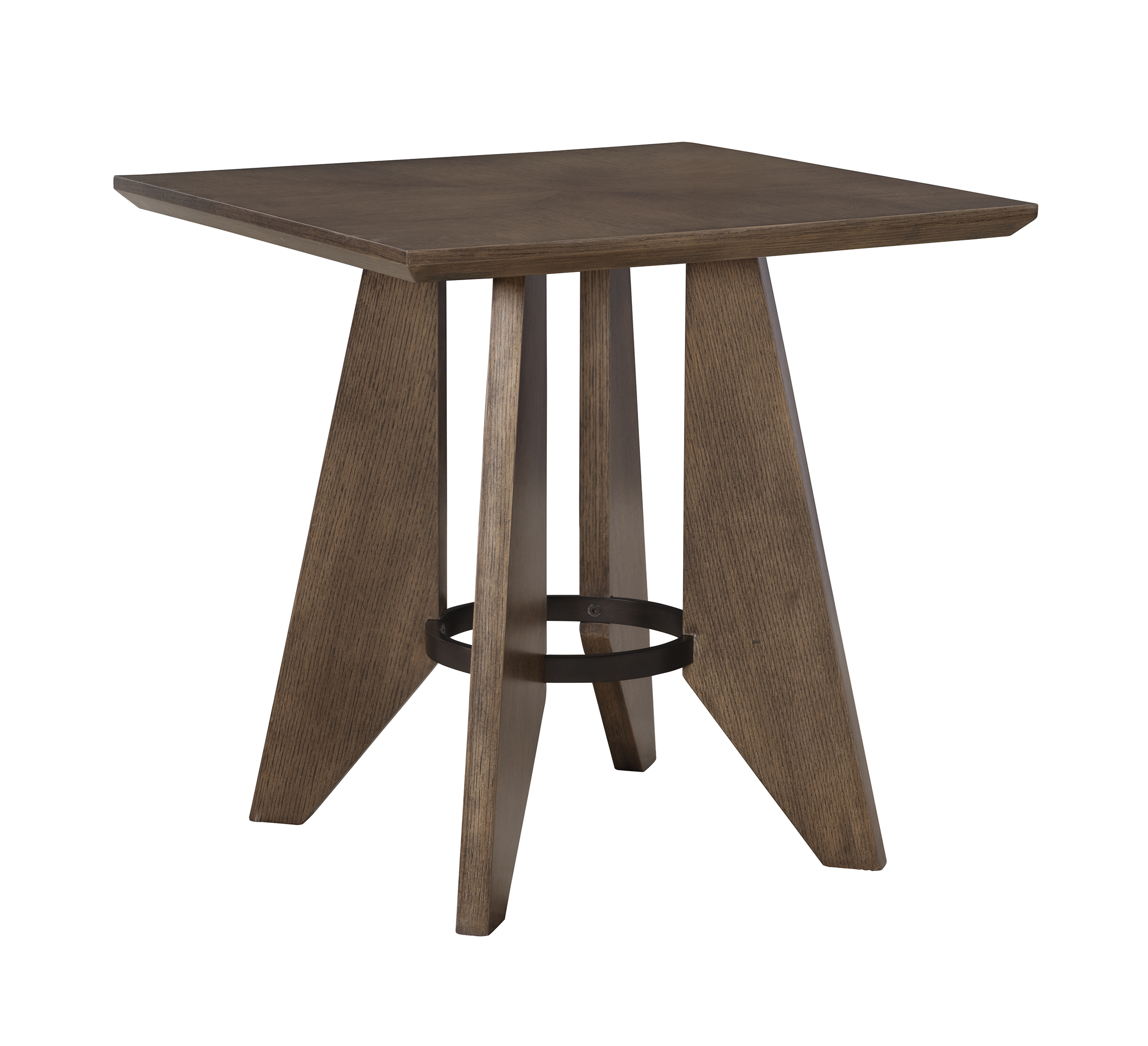 The Santé End Table is a celebration of craftsmanship and form, featuring a rift-cut white oak top with mitered pattern that highlights the natural beauty of the wood. Its solid oak angular legs, bound together by a browned steel coined ring, create a striking interplay of materials and structure. A perfect balance of strength and elegance, the Santé End Table brings a refined presence to any space. À votre santé!