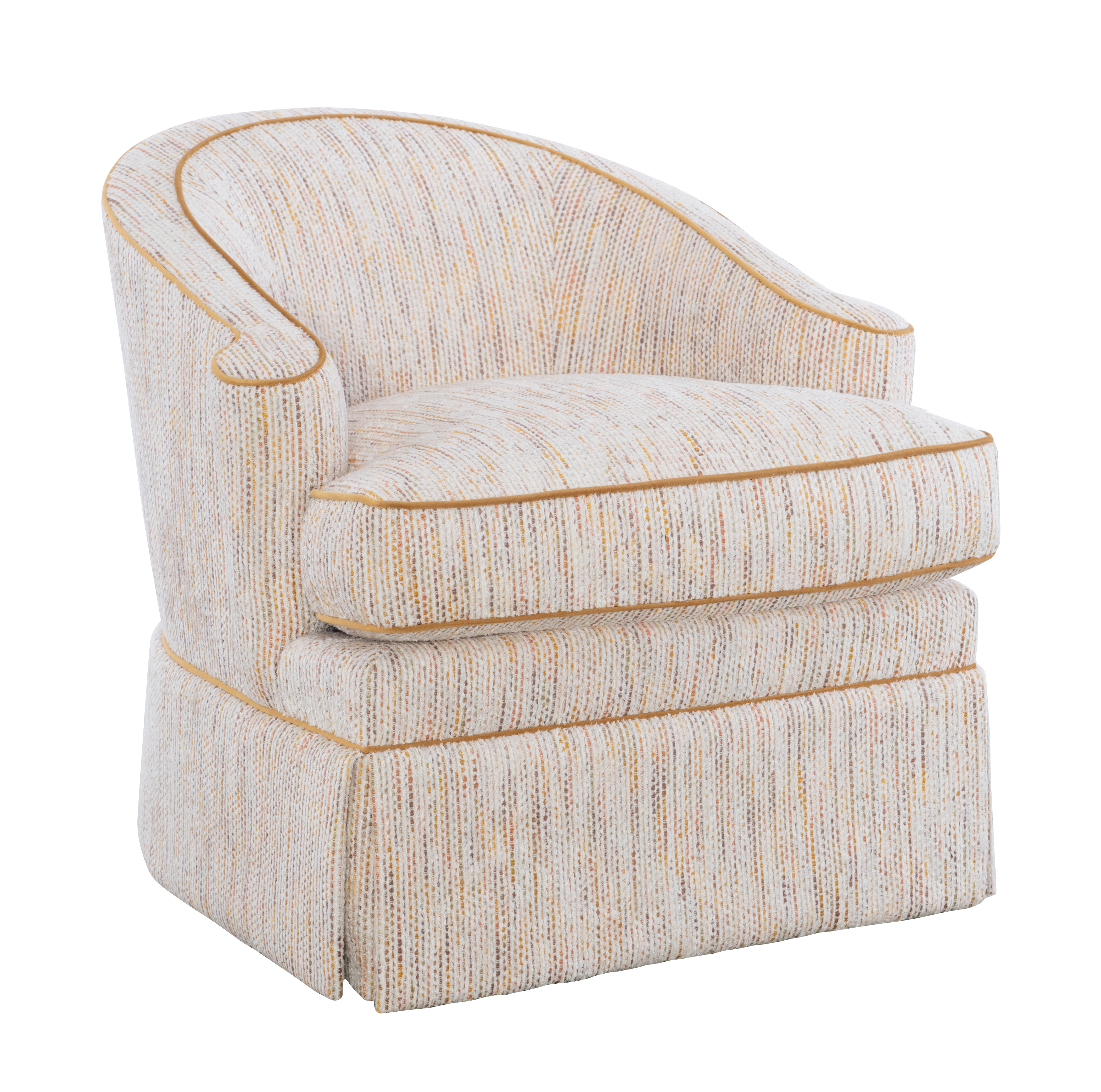 Inspired by Pearson’s iconic frames, we’ve reintroduced the classic Ember in both exposed wood and skirted silhouettes. To expand on the traditional kickpleat skirt, we’ve added new options including a tailored box pleat and a soft shirred ruffle. True to Pearson’s signature sit, the Ember is built with Salem Rod construction (on stationary frames) and comes standard with a Spring Down seat cushion and a tight back. The scroll border arm provides a perfect opportunity for a contrast fabric application. For added versatility, the skirted chair is offered in both stationary and swivel versions.