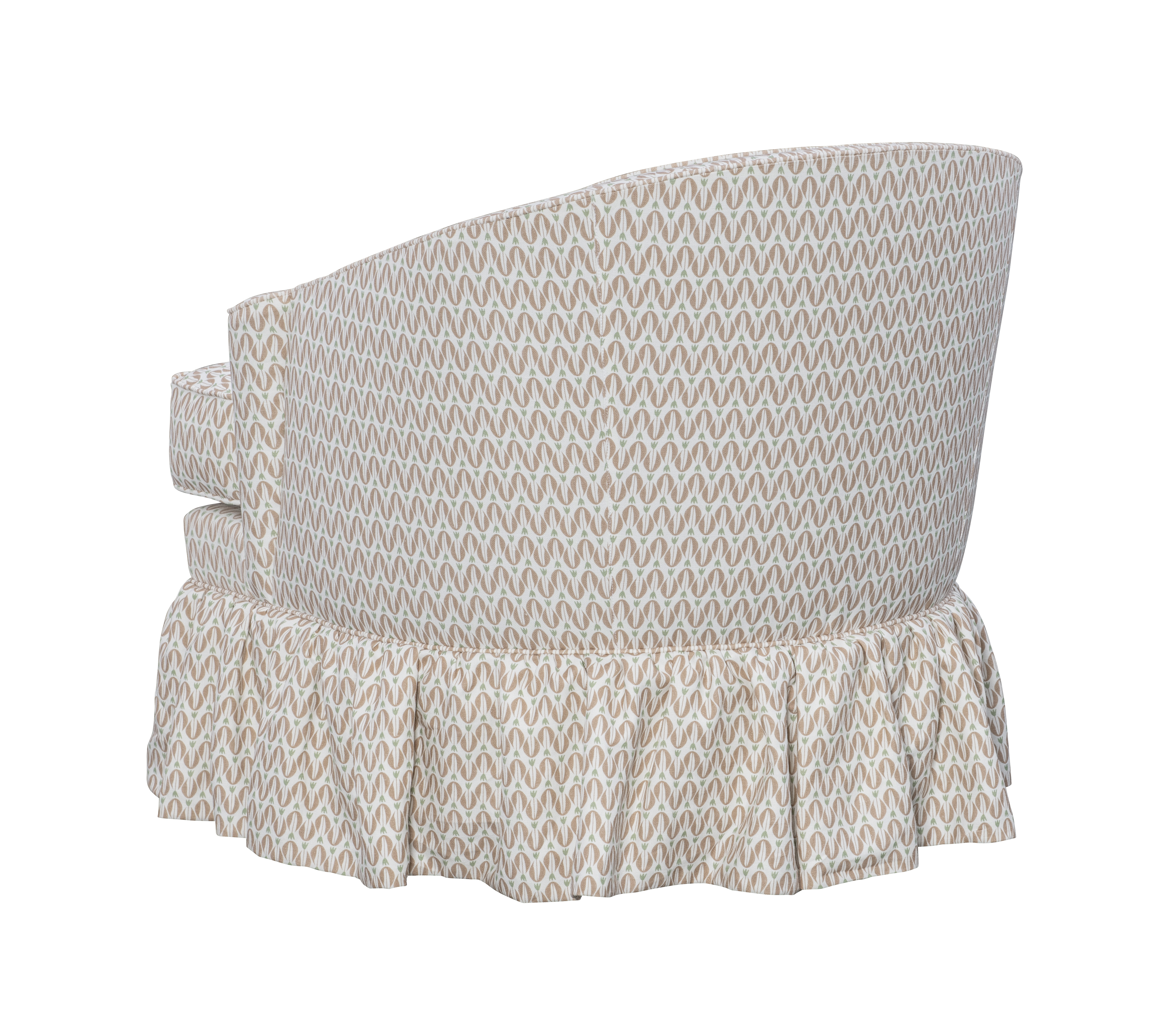 Inspired by Pearson’s iconic frames, we’ve reintroduced the classic Ember in both exposed wood and skirted silhouettes. To expand on the traditional kickpleat skirt, we’ve added new options including a tailored box pleat and a soft shirred ruffle. True to Pearson’s signature sit, the Ember is built with Salem Rod construction (on stationary frames) and comes standard with a Spring Down seat cushion and a tight back. The scroll border arm provides a perfect opportunity for a contrast fabric application. For added versatility, the skirted chair is offered in both stationary and swivel versions.