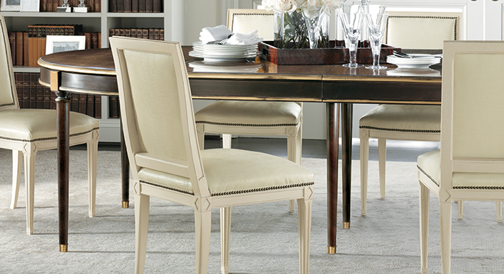 Hand-applied striping is available on any Hickory items that are offered in our wide range of optional finishes. Twelve striping colors are featured in two techniques: The Antique Rub technique features translucent rub-through in areas that reveal the underlying finish while the Solid technique is applied evenly. Please note that striping colors may look different on each base finish. Solid Striping is a solid color stripe applied evenly. Antique Rub Striping is a solid color stripe with random areas that have been rubbed through revealing the underlying finish. Solid striping is standard.