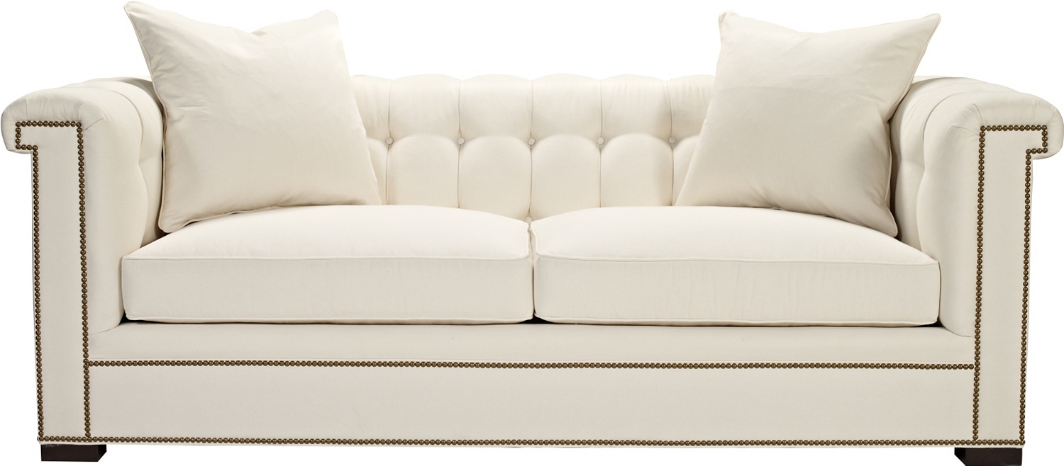 The Kent Sofa is a generously scaled Chesterfield-style sofa with authentically biscuit-tufted arms and inside back. This luxurious and inviting form was inspired by a Hickory Chair sofa that was introduced into the upholstery assortment several decades ago. Standard at 89 inches wide, Kent is also available in Made To Measure in increments of 47”, 61”, 75”, 89”, 103”, and 117” in order to retain the proper tufting pattern. Kent has a sleek, low profile with wide flat arms and back and nail head trim all over all resting on wafer feet . Two 24-inch 100% goose feather throw pillows standard in fabric. When ordering this item in leather, please note that pillows are not included and must be purchased separately. To match the standard pillows included with the fabric version, order an additional quantity of pillow SKU HC924-96. NS-08 nail head trim standard. 2-piece Luxury Spring-Down seat cushion standard. A companion chair, ottoman and Made To Measure ottoman are also available. 89-inch size sofa shown.