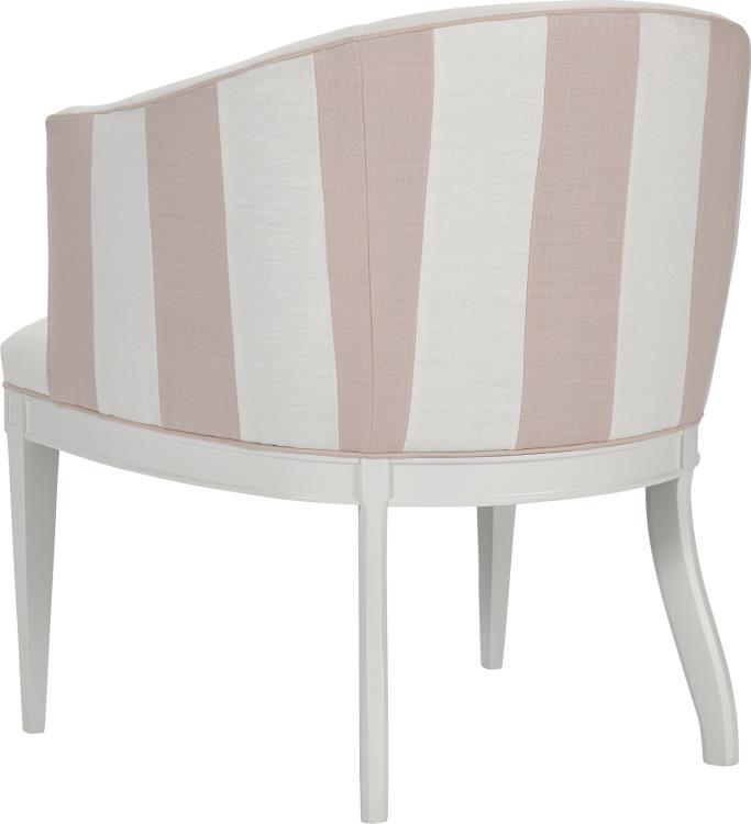 One of the most distinctive pieces in Suzanne Kasler's collection is the Bennett Chair. It has wonderful traditional lines but with Suzanne's design prowess, it transcends modern and classic design. It has a shapely and very comfortable barrel back chair with a decorative border on the interior. As shown you can see how a contrast fabric can highlight this unique detail.