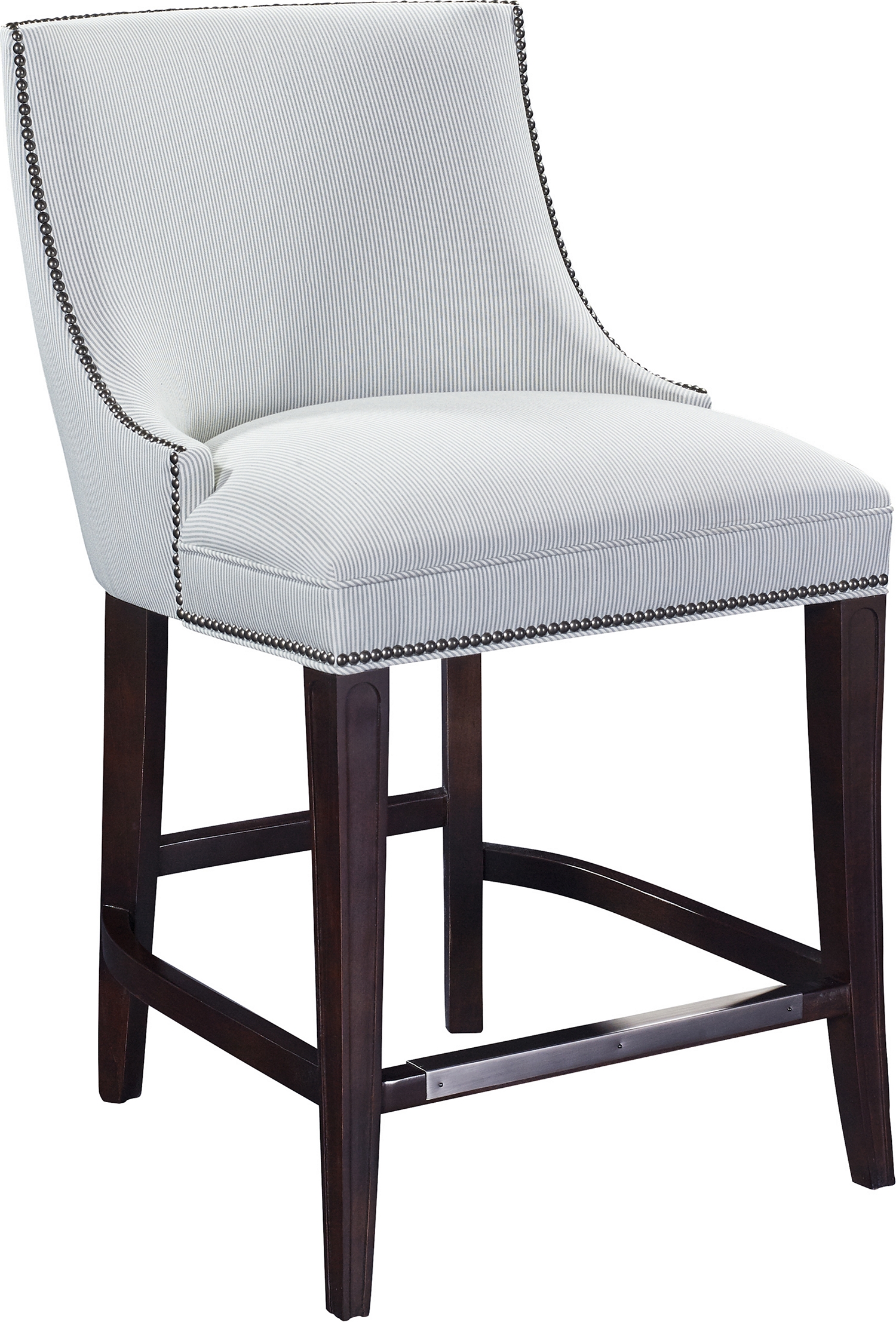 Extended from the bestselling Hunt Chair, the Hunt Bar and Counter Stools are beautifully tailored with a livable scale and classic lines. The Hunt Chair was inspired by a vintage modern chair that Suzanne found several years ago. Distinctive features include the graceful curve of the legs, the contoured back and nail head trim. Standard with NP-08 nail head trim and Antique Brass stretcher guards.