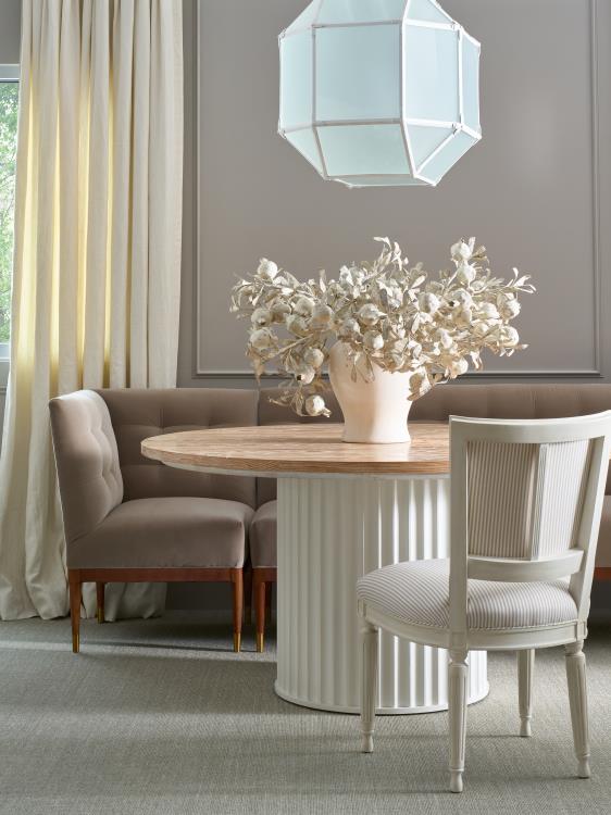 With classically turned legs, modern scale, and partial open construction, the Velours Dining Side and Arm Chair offers dressy sophistication while remaining current. Collecting antique chairs remains a passion of Suzanne Kasler’s and the Velours are inspired by a favorite antique in her personal collection. A true modern classic.