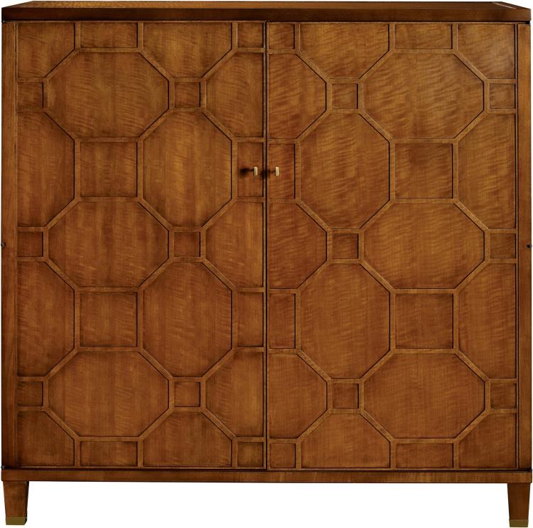 Reminiscent of the 1930’s and 1940’s French Moderne period, the doors of the Blackland Cabinet are characterized by a bold geometric raised mullion pattern revealing the anegre veneers behind. Custom made ferrules and a flush mount key-pull adorn the cabinet. The interior features an adjustable shelf and four drawers to provide storage as well as media solutions. It’s also available with a special hand decoration pattern on the doors.