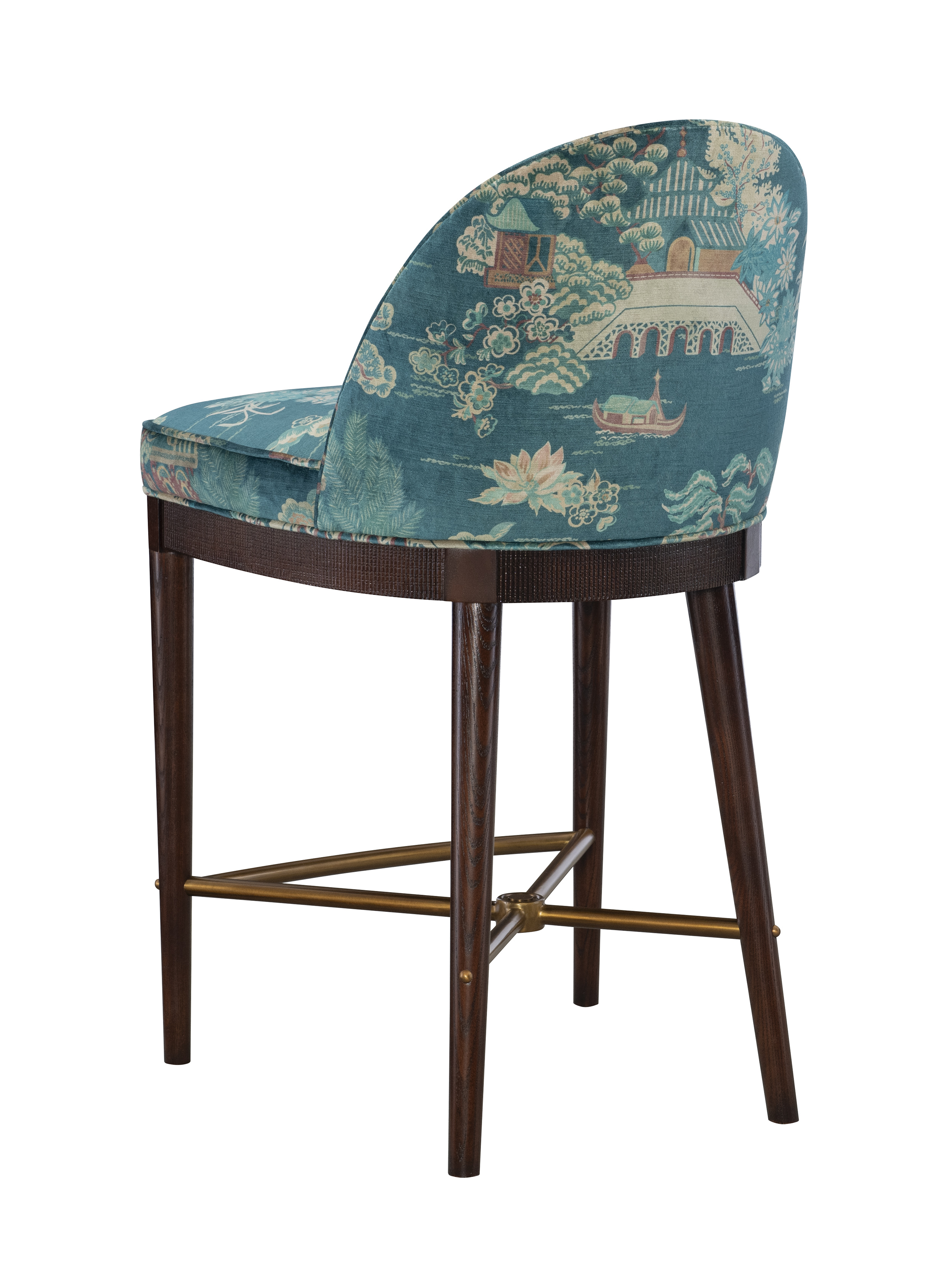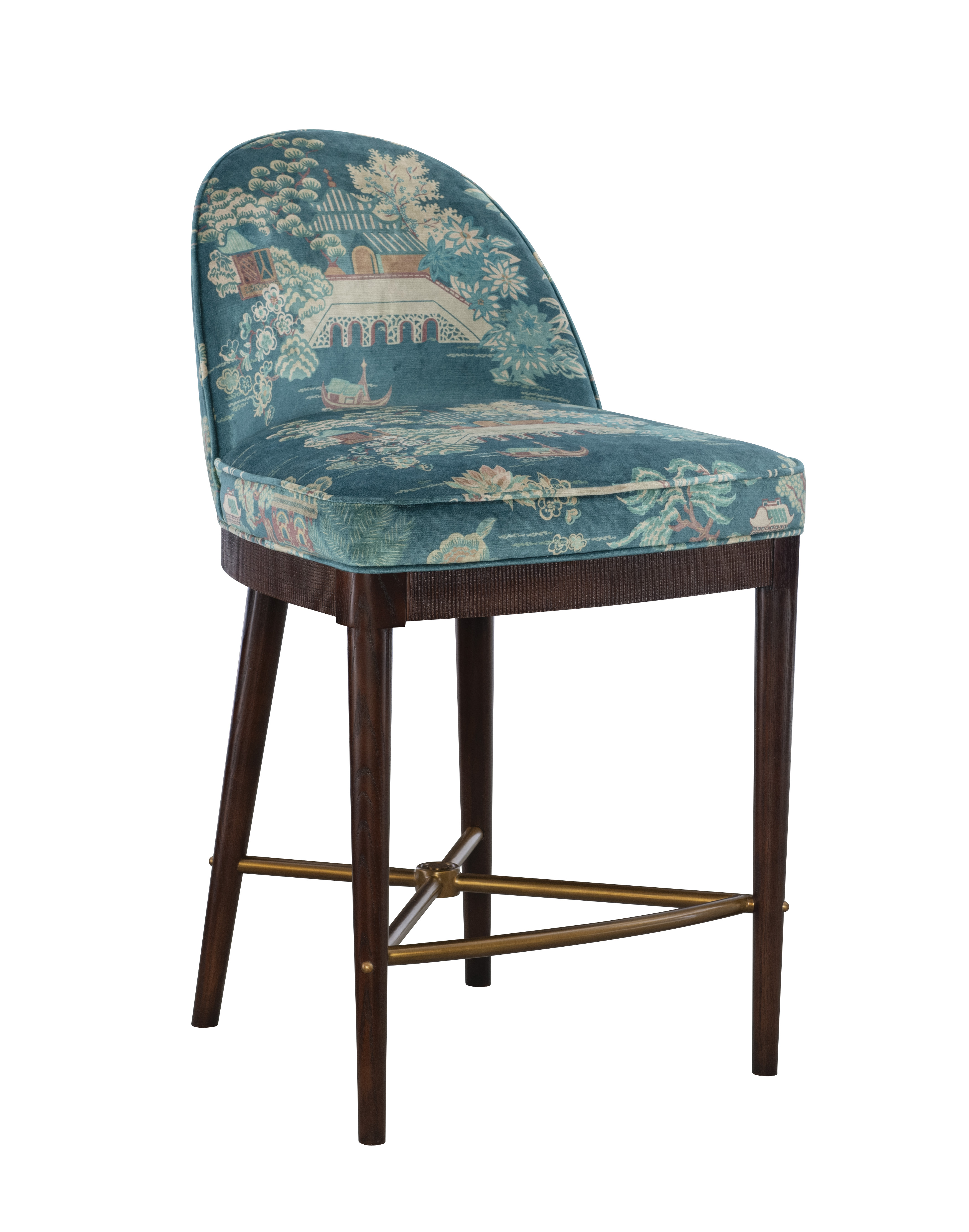Inspired by the French Moderne chairs of the 1930s, the Laurent Counter Stool has an elegantly contoured back, a reeded apron and finely tapered legs joined together by a beautiful French Brass finished X-shaped stretcher. The Laurent Stool is available in either bar height or counter height.