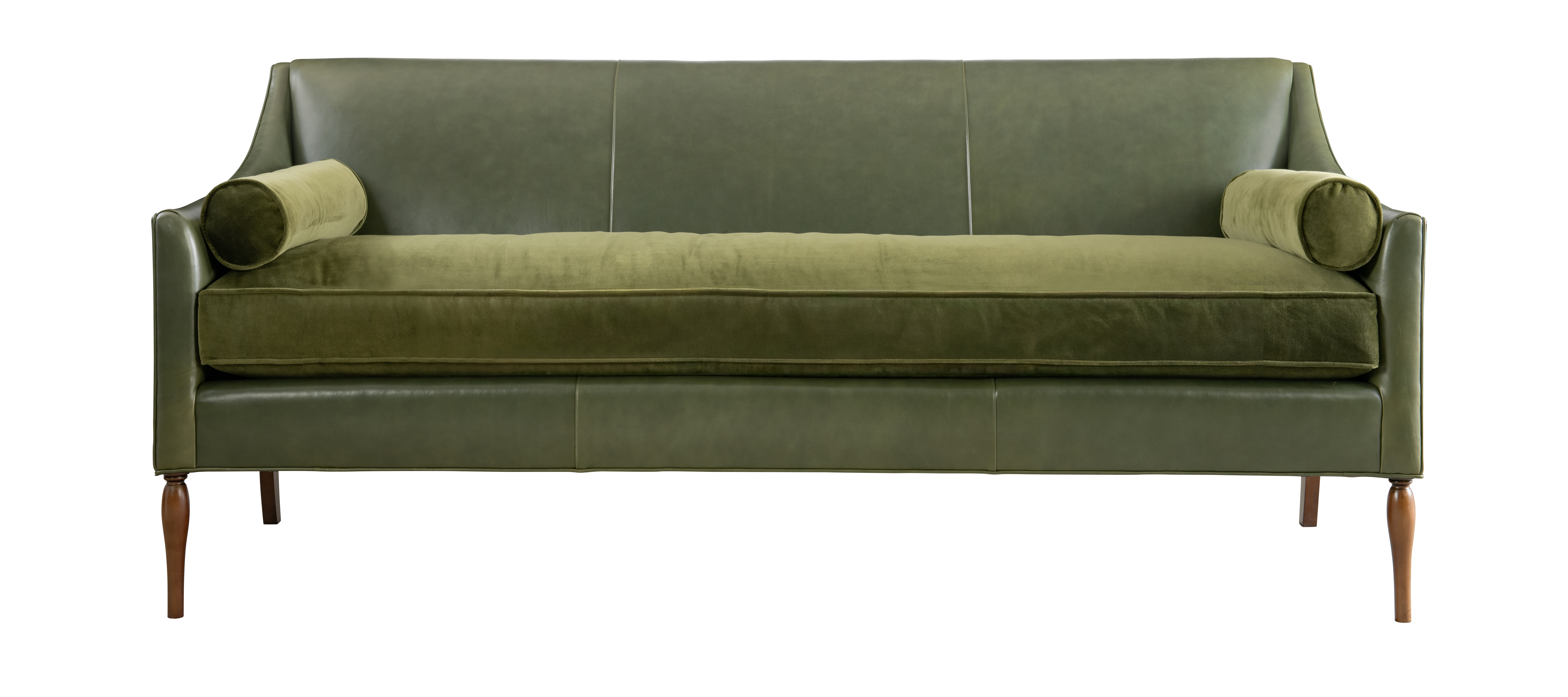 The Frederick M2M Sofa pays homage to traditional design with its tight back, slender sloping track arms, and delicate turned legs. Its traditional silhouette is enhanced with the addition of two bolsters and a bench seat, offering both comfort and a touch of flair to any space. When ordering this item in leather, please note that pillows are not included and must be purchased separately. To match the standard pillows included with the fabric version, order an additional quantity of pillow SKU HC991-96.