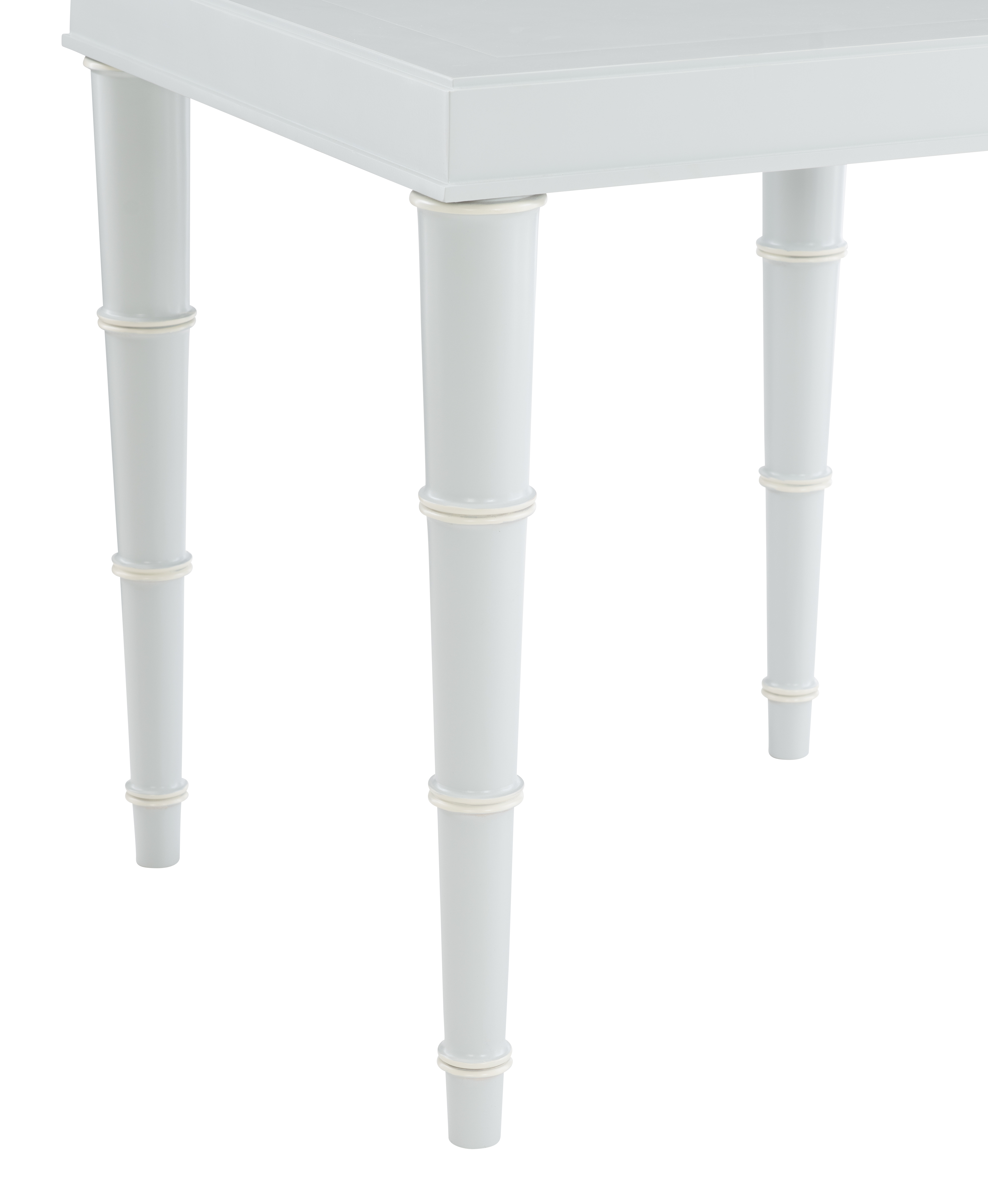 The Banbury M2M Table series, hand-turned bamboo legs are the most distinguishing feature. The bamboo knuckles offer a great opportunity for striping. The top inset panel is available in a choice of 6 beautiful wood veneers including Ash, Beeswing Primavera, Walnut, Burl, Mahogany, or Maple and over 30 luxurious leathers from Hickory Chair’s Colours Leather offerings as COV®. It is available in four height options including a cocktail table, side table, dining table, and console. Made To Measure the series is available in one-inch increments from as small as 16 by 16 inches to as large as the depth to 52 inches and the width to 72 inches. Must specify table size and top inset choice along with finish selection(s).
