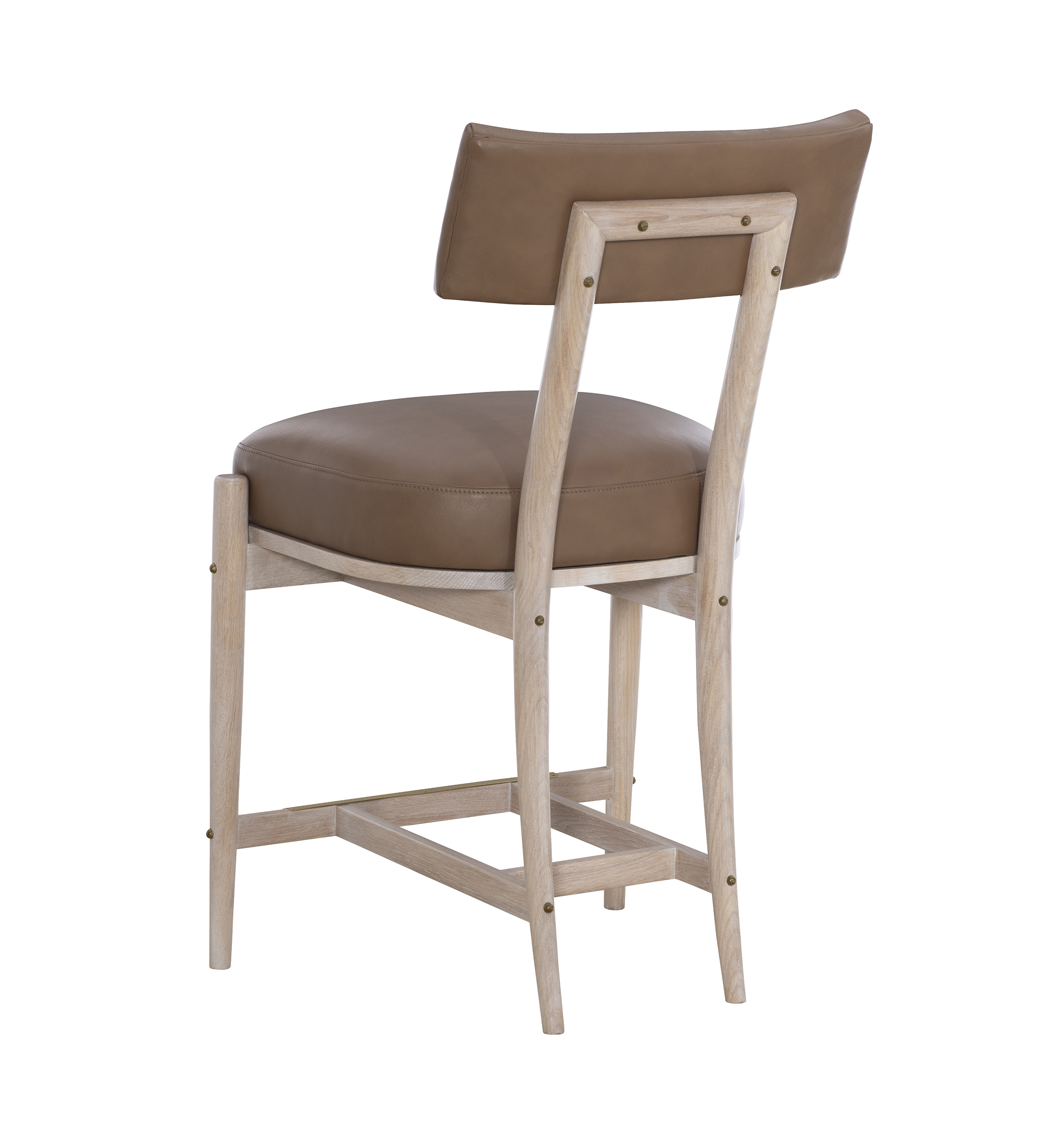 Klio is the epitome of elegance and comfort, designed for both refined dining and relaxed gatherings. With its klismos shaped back and tailored upholstery, the Klio Counter Stool invites guests to linger, offering exceptional comfort with a sculpted silhouette. The Counter Stool version maintains the same exquisite craftsmanship, elevated to the perfect height for casual dining or entertaining. Thoughtfully proportioned and meticulously constructed in solid White Oak with a choice of either Browned Steel foot guard and accents or Antique Brass foot guard and accents, Klio blends seamlessly into a range of interiors, from contemporary to transitional, making it a timeless investment in both form and function.