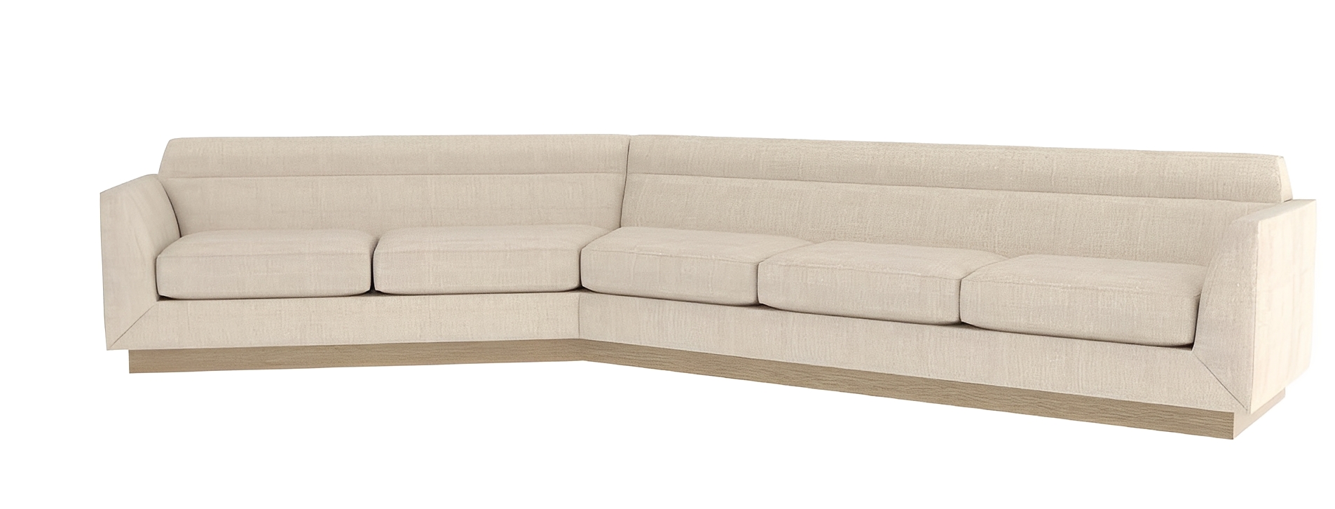 The Rylen Sectional embodies contemporary elegance with its sculptural form and exquisite tailoring. Its generous proportions, deep seating, and unique angles create an inviting focal point. Designed to float effortlessly in any space, this sectional offers grand seating and a distinctive layout that adds dimension to any room. The subtly tapered arms feature a mitered seam detail at the base, while the tight back integrates built-in lumbar support that gently transitions into a horizontal channel, with the upper section providing head support. Resting on a solid white oak plinth base, the Rylen Sectional is equally at home in formal settings and relaxed lounge areas, delivering an elevated, yet welcoming presence. When ordering this item in leather, please note that pillows are not included and must be purchased separately. To match the standard pillows included with the fabric version, order an additional quantity of pillow SKU HC922-96. Sectional connectors standard.