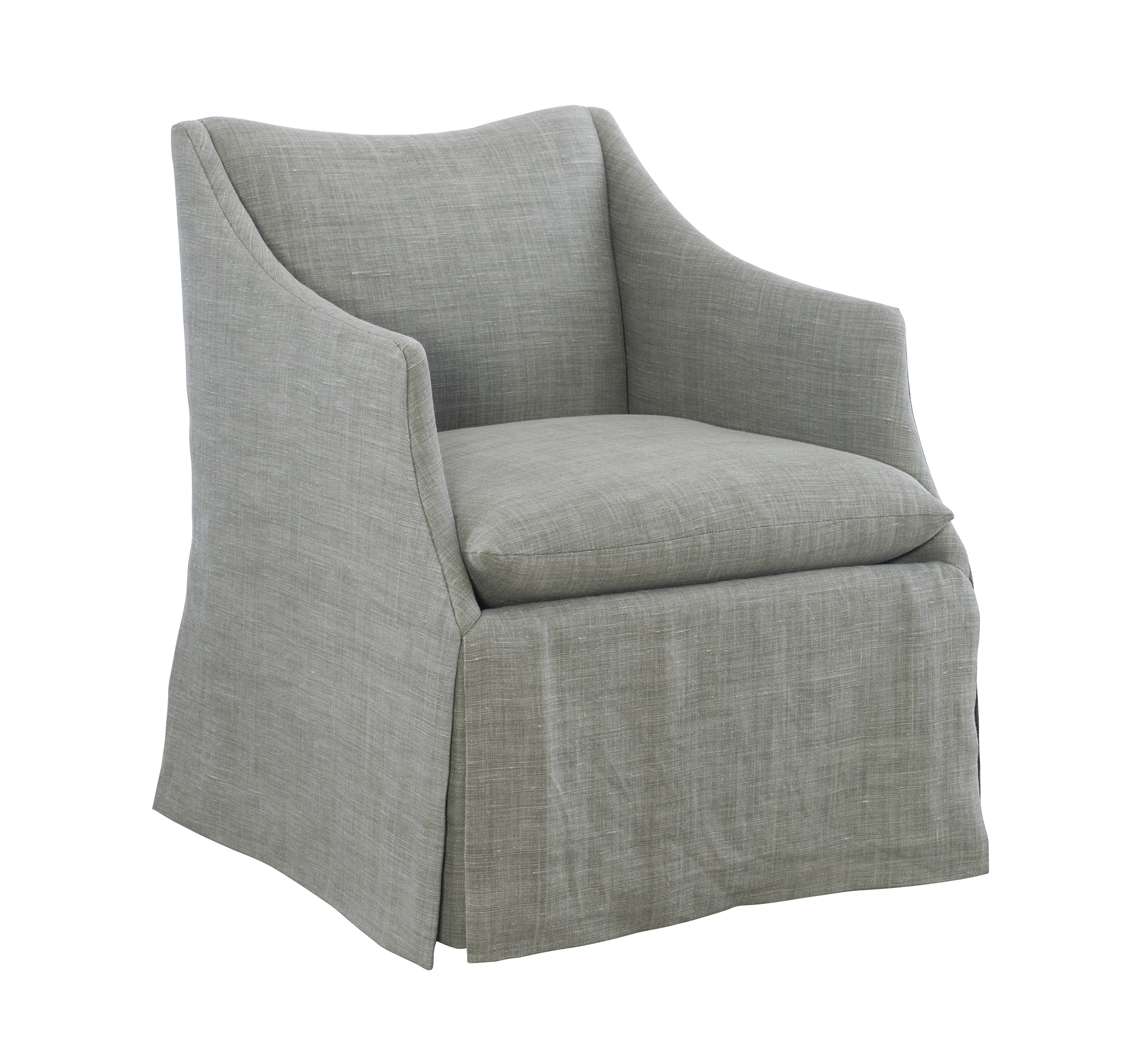 Oletta Chair, Derived from the meaning “truth” or “small winged one,” the name Oletta evokes a sense of grace, lightness, and authenticity. The chair’s design reflects this spirit with a soft swoop along the back, arms, and front rail, creating a gentle and inviting silhouette. A loose classic seat cushion with knife-edge tailoring provides a relaxed yet refined sit. The waterfall skirt adds timeless elegance, while casters (standard, optional without) offer effortless versatility. Perfect as a dining, game, or occasional chair, Oletta is both charming in meaning and graceful in form.