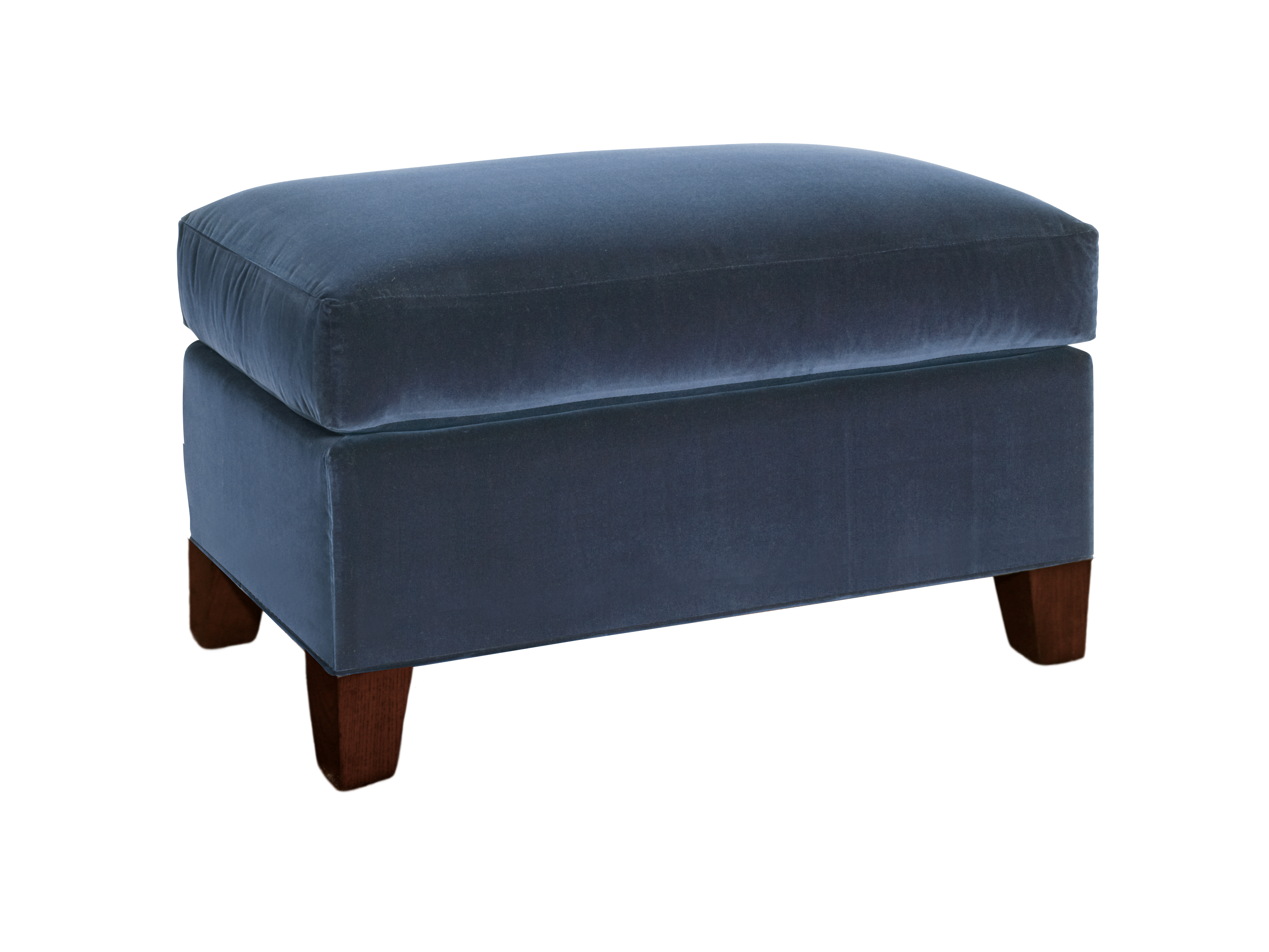The iconic Jules series is defined by its incredible comfort and elegant shape. The Jules Ottoman has a choice of five bases; B1 Exposed Wood with Tapered Leg, B2 Tapered Leg, B3 Upholstered Base, B4 Dressmaker Skirt, and B5 Wood Trim. The B3 and B4 bases have the option of recessed casters for an up-charge. Standard with a semi-attached cushion.