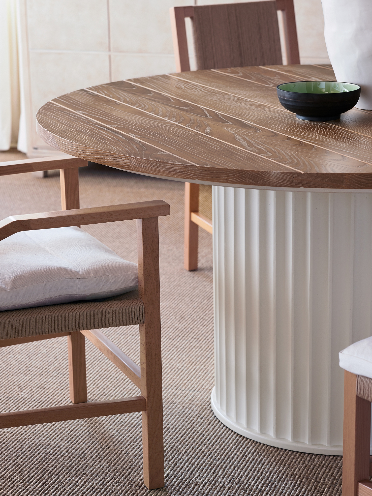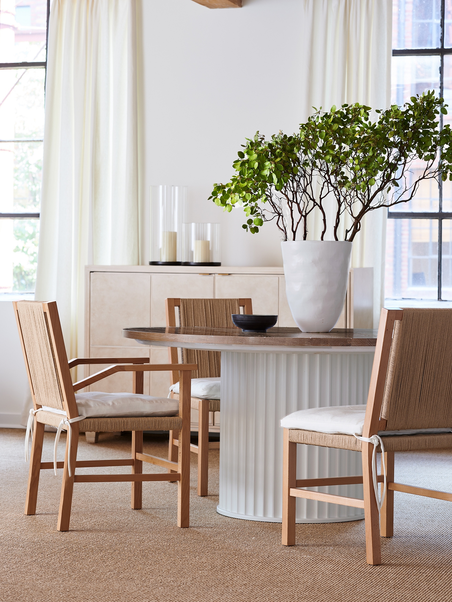 A sophisticated yet organic iteration of an antique stone-based table, this design combines a faux limestone pedestal with a solid ash plank top. An octagonal base plate rests on flattened bun feet, adding both height and personality to this versatile table. The top and base are part of our Personal Preference Dining Table program which allows you to select from a variety of tops and bases to create a custom table for your home.